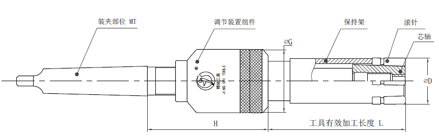 注:孔徑Φ26-68的滾壓刀有效加工長度從B檔開始柄部標配MT3,如需其他型號規(guī)格需定做。加工孔徑Φ40以上的滾壓刀,由于調節(jié)組件的外徑比加工孔徑小,可通過加長柄部尺寸的方法增加加工長度。