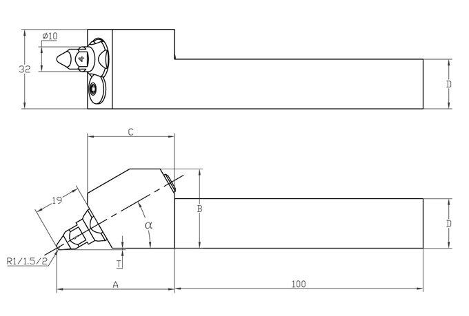 工具型號(hào) | 角度 | 尺寸 | 刀桿 | ||