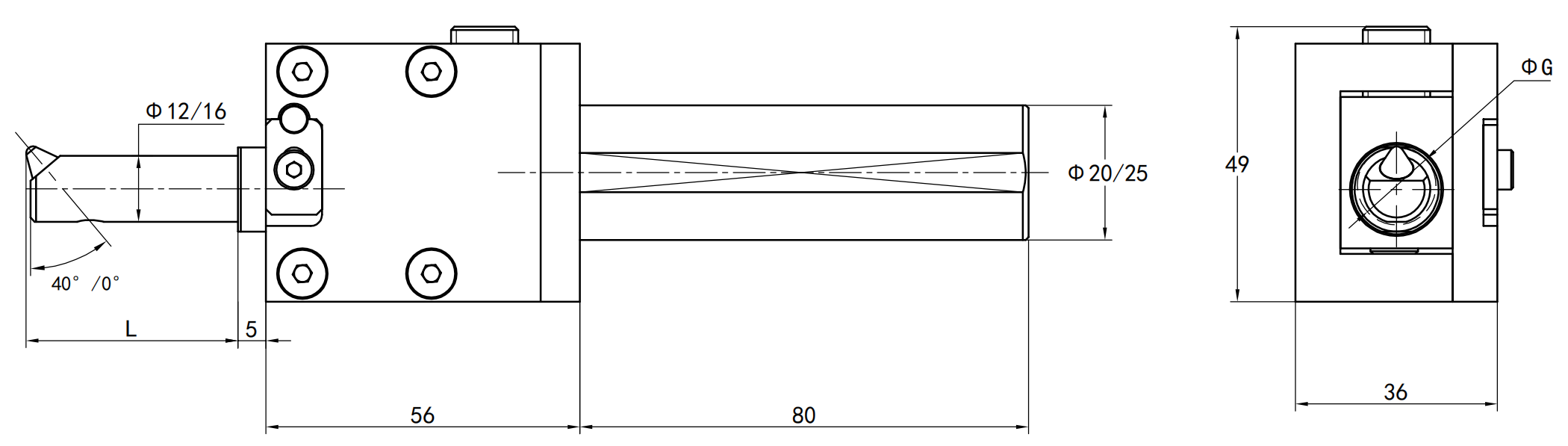 工具型號 | 角度 | 鏜刀桿尺寸 | 最小加工孔徑 | 安裝柄徑 |