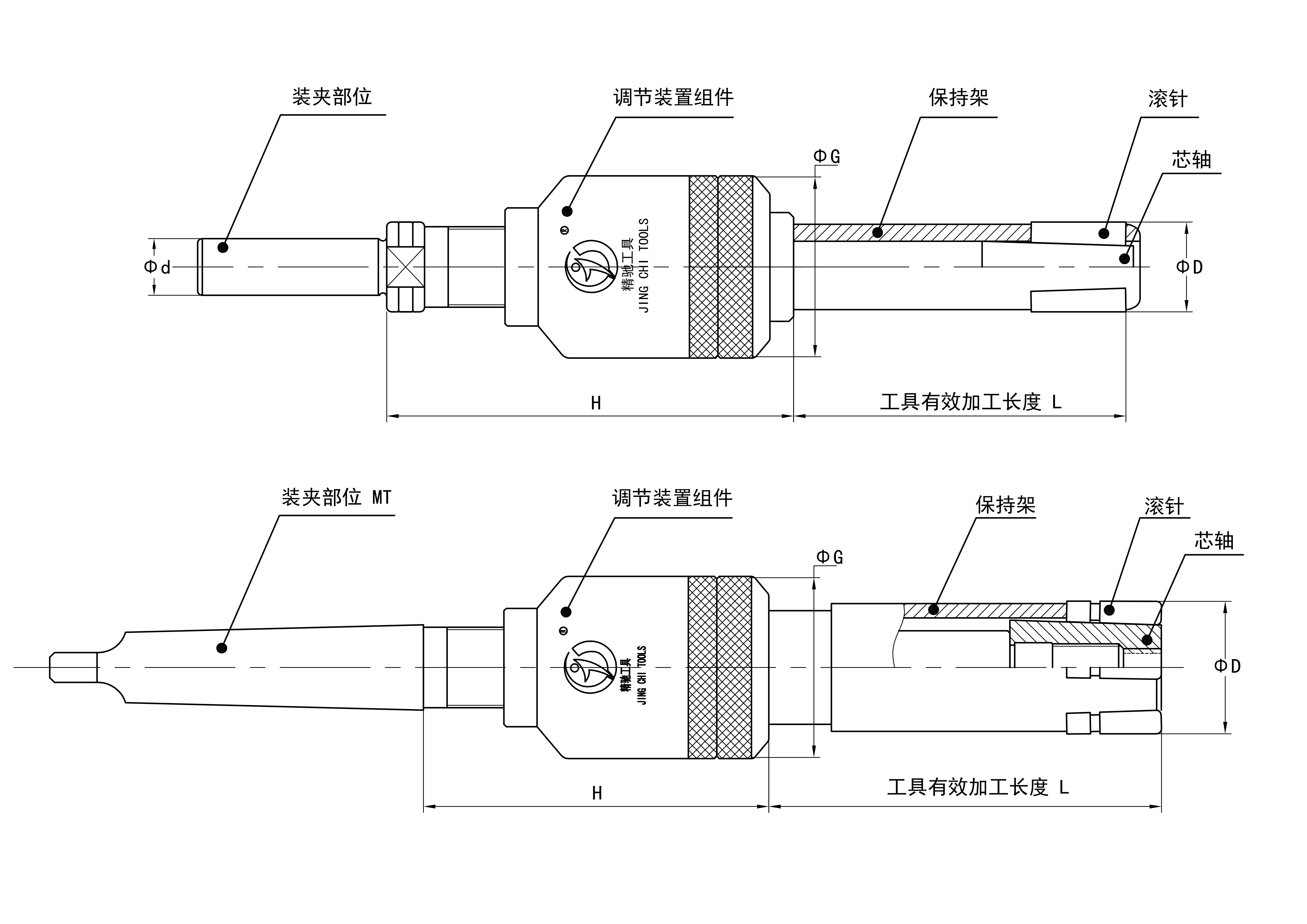 注:孔徑Φ26-68的滾壓刀有效加工長度從B檔開始柄部標(biāo)配MT3,如需其他型號規(guī)格需定做。加工孔徑Φ40以上的滾壓刀,由于調(diào)節(jié)組件的外徑比加工孔徑小,可通過加長柄部尺寸的方法增加加工長度。